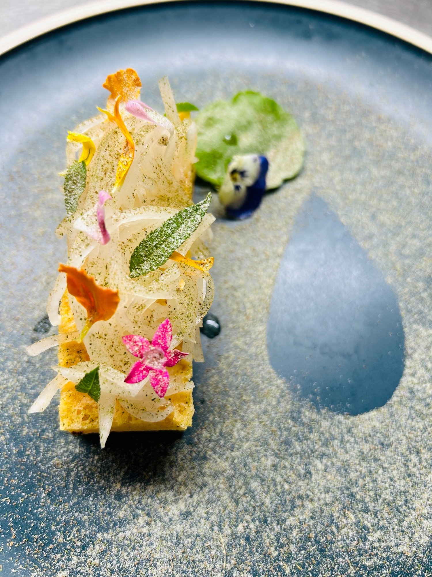 水中精靈沙拉佐綠色醬汁採用荷西時期水甕菜搭配檸檬特調醬汁和蔬果,呈現出多層次蜂蜜口感。覓河風光香蕉木蓮汽泡飲採用當地特產木蓮花和香蕉花釀製而成。甜點部分,為了感謝日本人的水道建造,特別使用日式料理的結局手法,做出淡水河蝦、山藥等成分的玉子燒,並灑上自家淺烘焙的月桃葉糖粉和抹茶鹽,呈現出層次豐富的口感。此外,飲品更是使用源頭純淨甜美的水,沖泡新北市國寶茶師手作的鐵觀音茶,帶領旅客品嚐淡水的人文薈萃。
