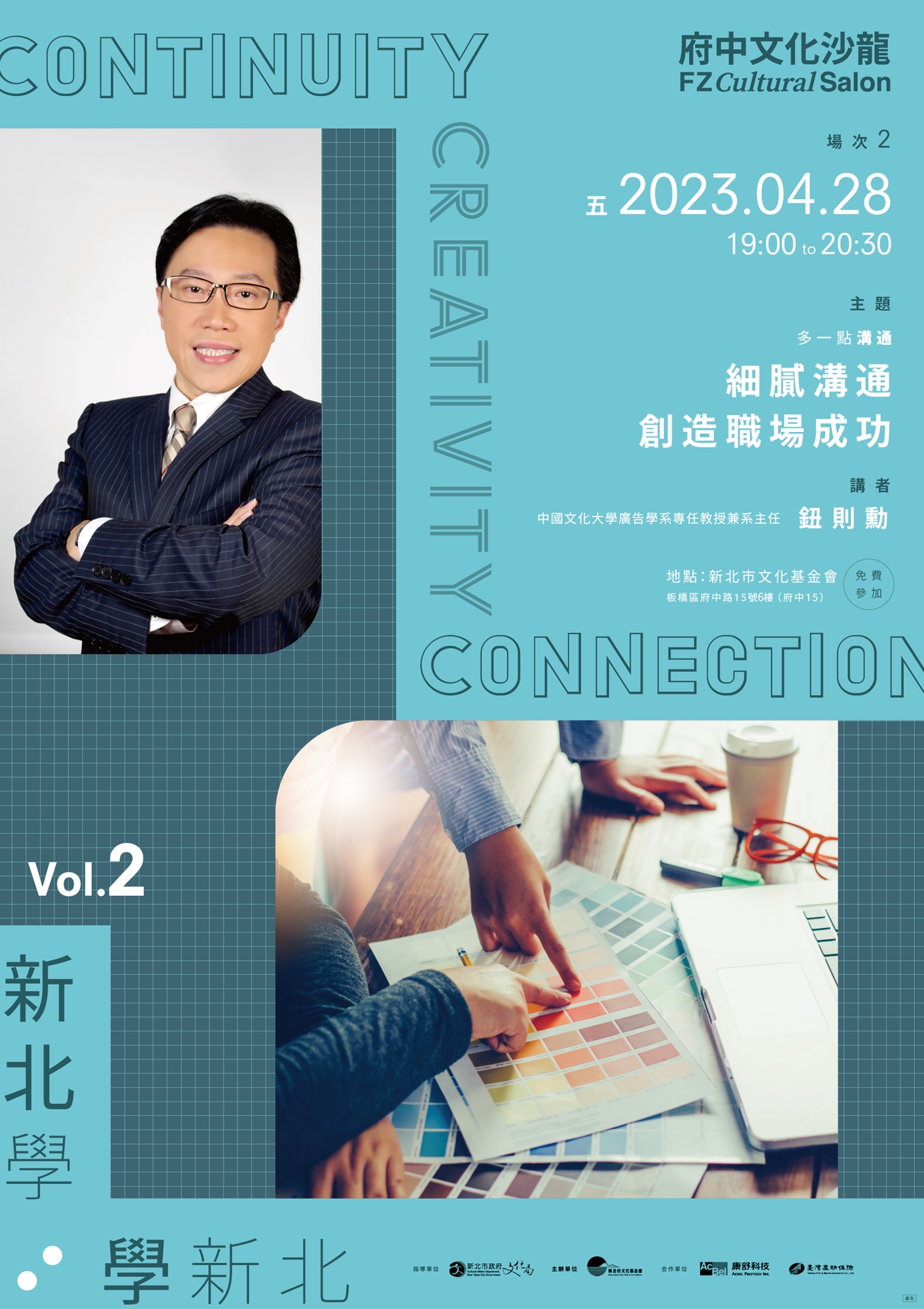 2023府中文化沙龍,邀請到溝通達人、文化大學鈕則勳教授,分享運用細膩溝通,創造職場成功的技巧!