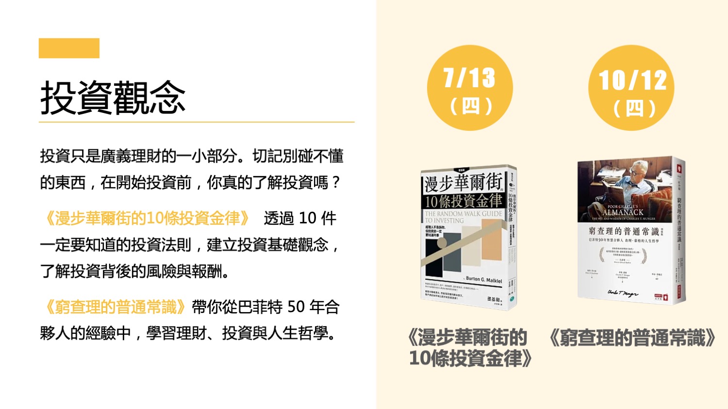 參加資格:報名任一場讀書會,並完成指定理財實踐任務,就可以免費參與!