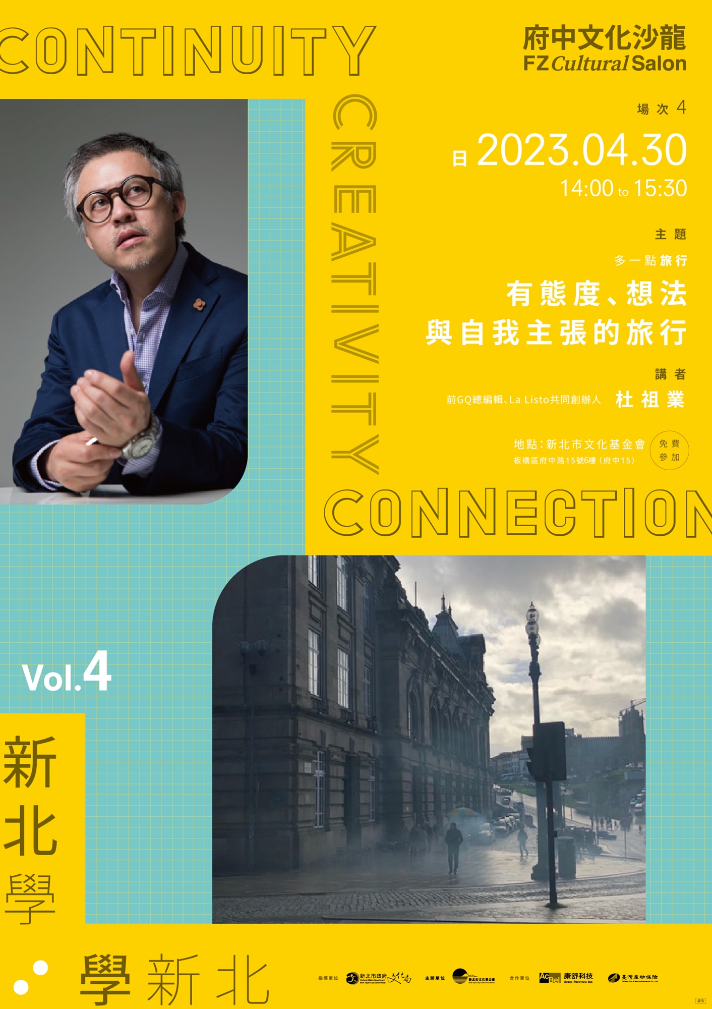 2023府中文化沙龍第四場活動,隨著最懂生活品味且常常在各國旅行的杜祖業分享,在週末午後想像一趟旅行,共同探索旅之道。