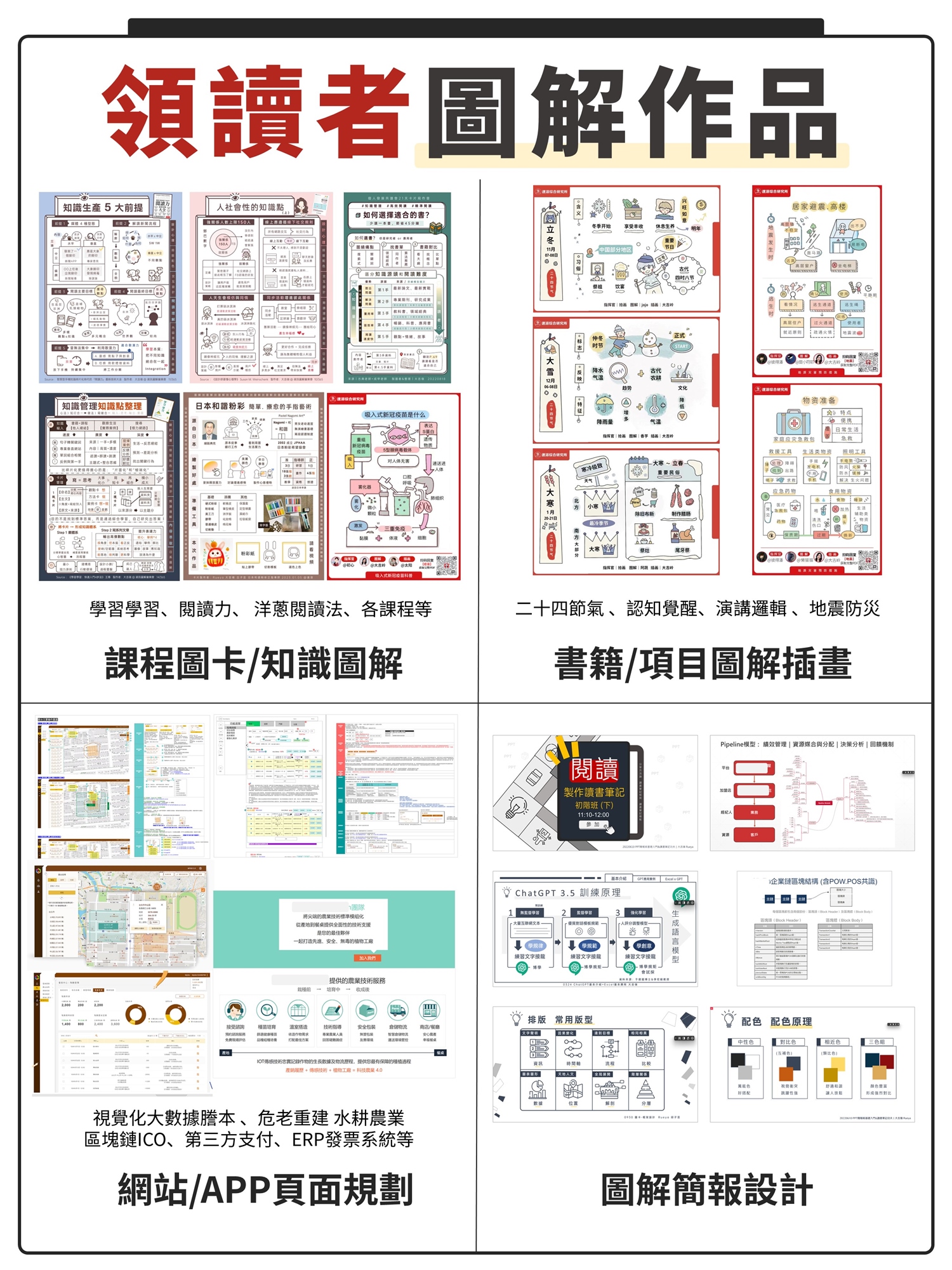 領讀者邱子芸(大吉嶺)為跨領域人士、現任速溶研究所圖解出版社圖解師兼插畫師,致力於文字視覺化創作,並擔任低代碼平台及智能製造外聘流程顧問,協助客戶實現數位轉型。