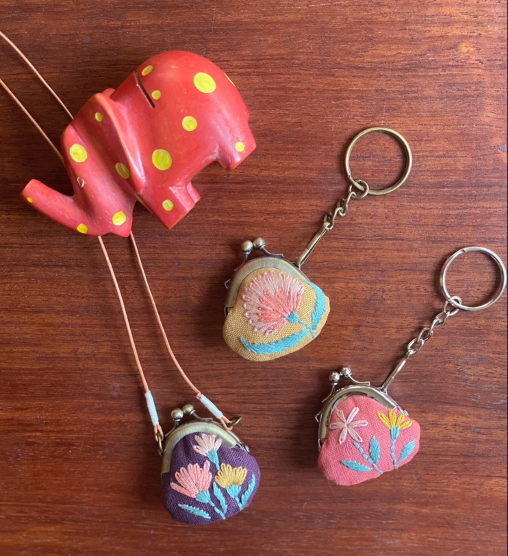 (材料含繡針、繡線、⼝⾦包表布-多⾊可挑、裏布、鋪棉表布、塞入式迷你⼝⾦1組 、棉繩項鍊或鑰匙圈五⾦擇⼀)