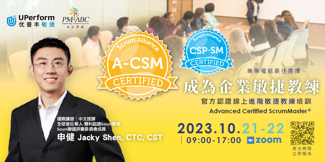 🔸獨家開課:2023/10/21-22 A-CSM進階認證培訓,ScrumMaster的價值開始被看見!