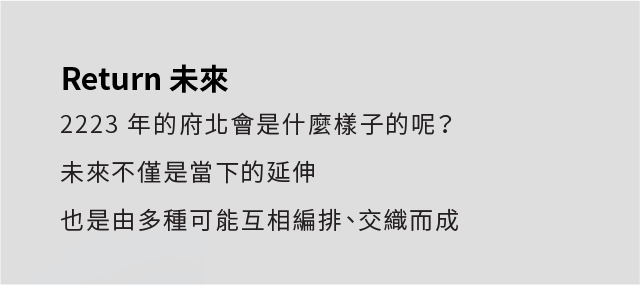 ⌁ Revisit 往昔 ⌁ Reflect 當下 ⌁ Return 未來
