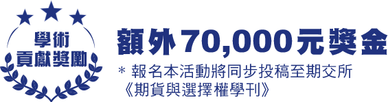 ● 論文符合指定主題且獲期交所納入業務規劃參考:獎金5萬