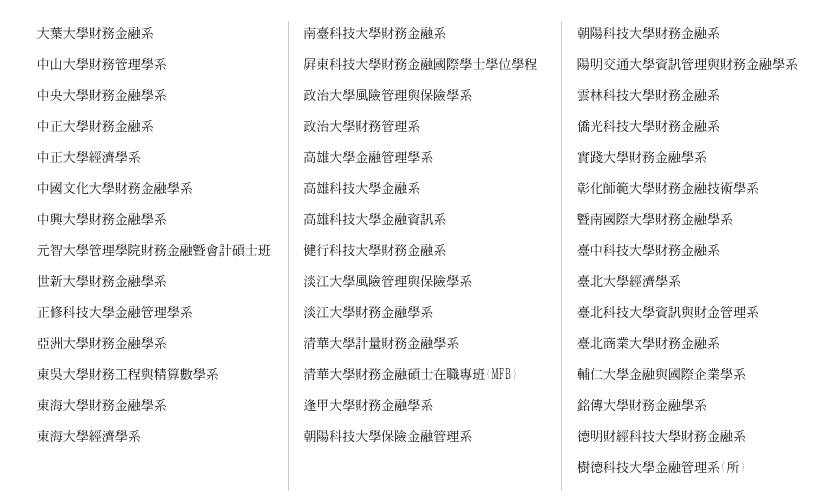 - 廣徵期貨、選擇權、衍生性商品(含法律規範與制度)相關或能協助金融期貨市場發展之理論、實證或應用等學術論文。
