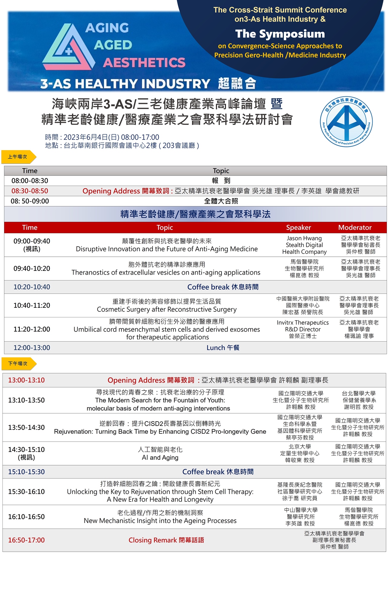 亞太衰老科學醫學大會暨3-As產業論壇