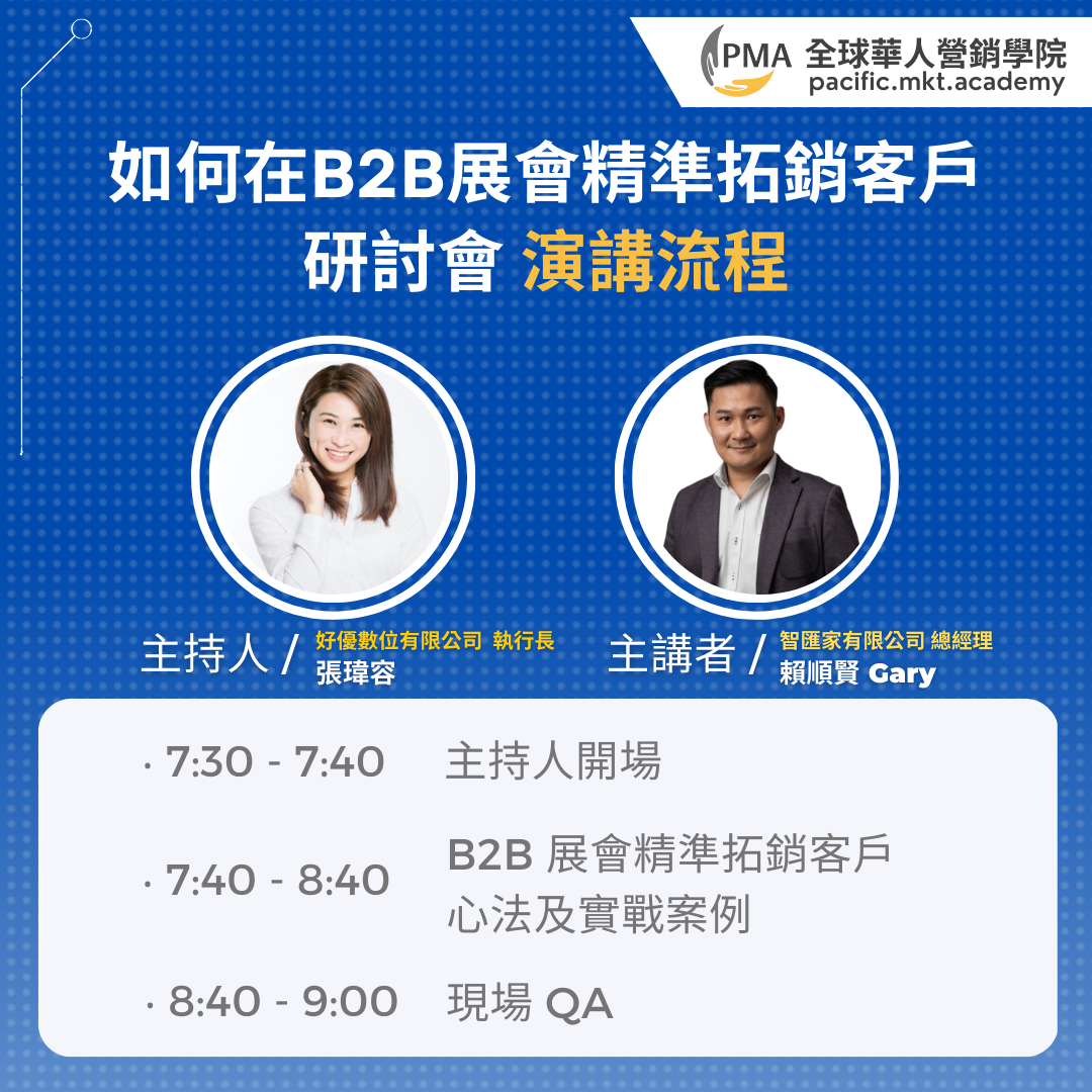 19:40-20:40|主題:B2B 展會精準拓銷客戶心法及實戰案例