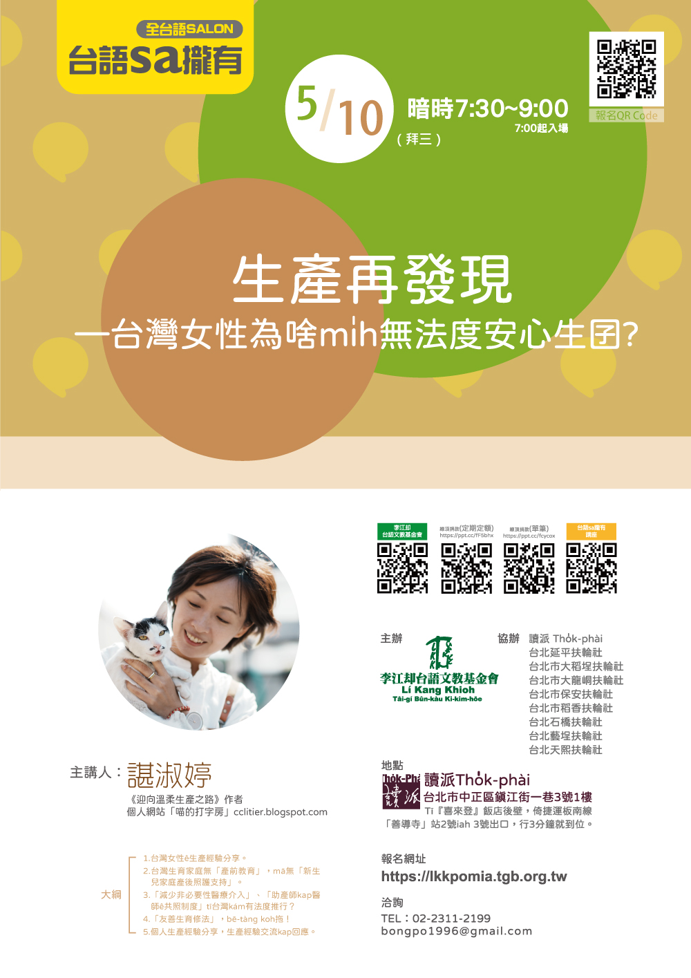 主講人:諶淑婷(《迎向溫柔生產之路》作者,個人網站「喵的打字房」cclitier.blogspot.com)