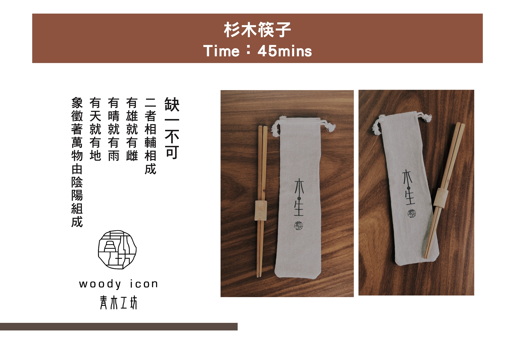 課程介紹:杉木材質輕軟,易乾燥,收縮小,不翹裂,耐久性能好,學員親自體驗木作工藝技術——刨木,感受杉木筷一點一滴成形,每個弧度,粗細都由您親自創造。溫暖優質的杉木筷子,非常適合🎁母親節送禮或自己使用。