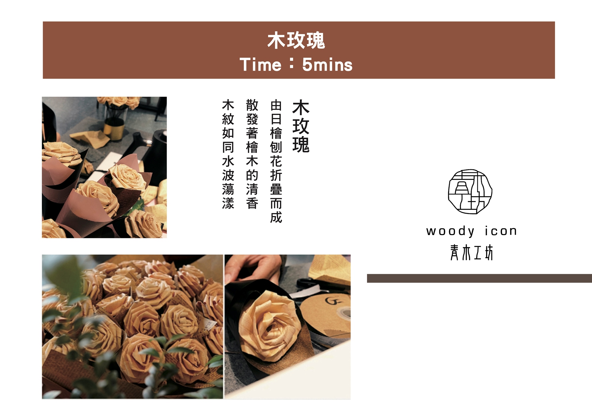 課程名稱:手折木玫瑰(主軸)+榫接木筷DIY體驗/拼字杯墊(二選一)