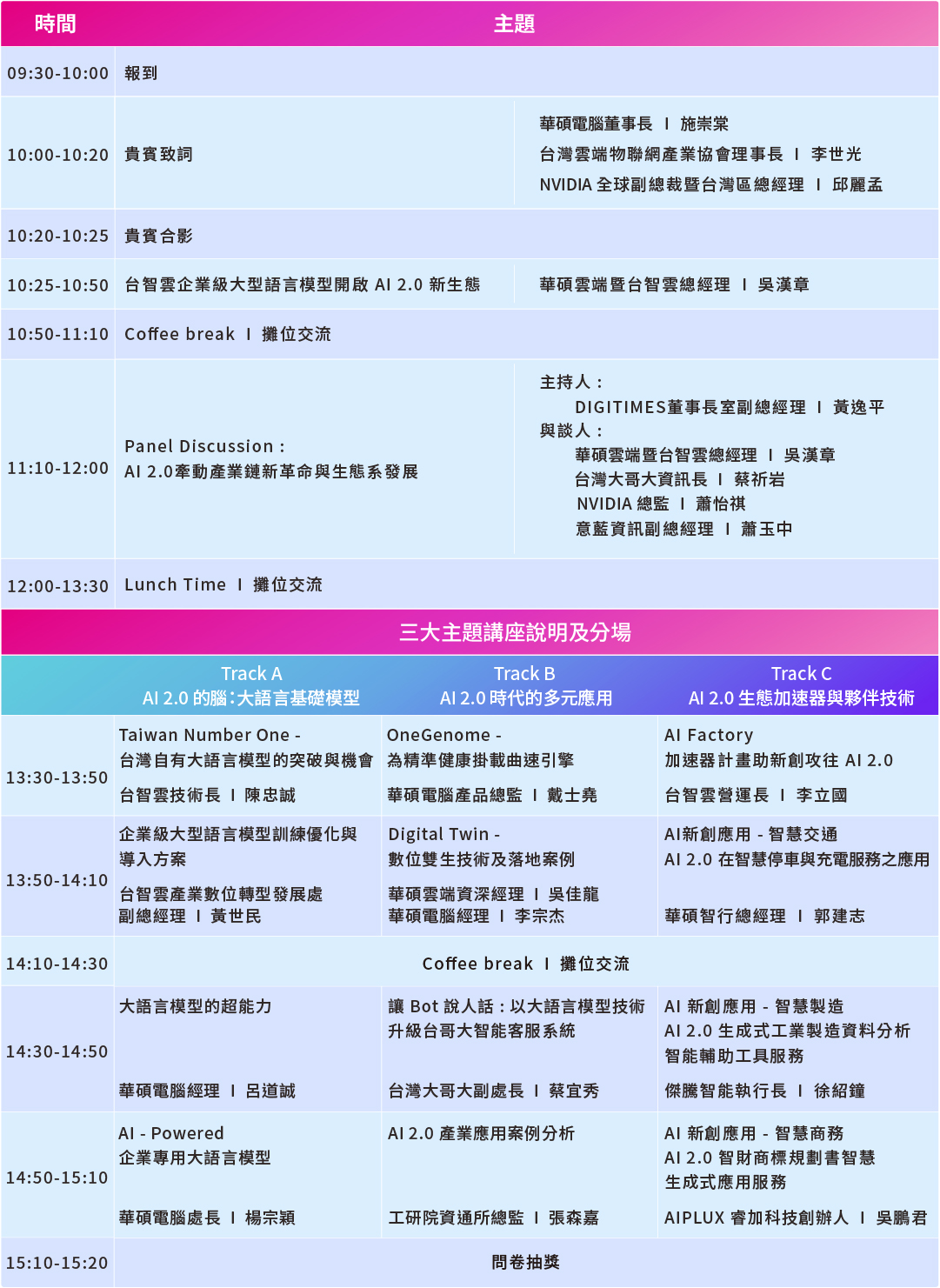 - 地點:華碩 AI 雲創園區1樓 (新北市淡水區中正東路二段 177 號)