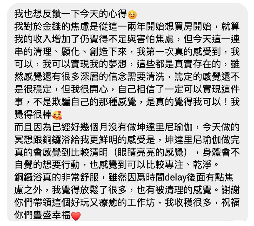 顯化金錢工作坊|昆達里尼瑜伽冥想、金錢靈氣與金錢寶盒製作、宇宙共振銅鑼浴