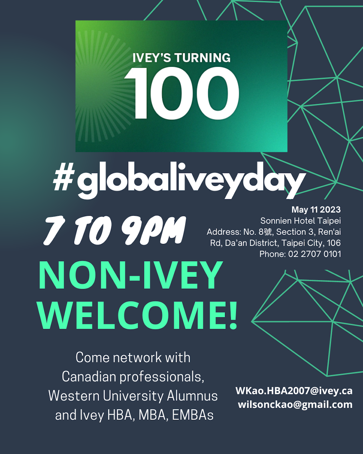 Ivey's 100th anniversary at the Sonnien Hotel in Taipei for Global Ivey Day