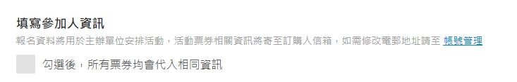 - A2.不需要,購票時一次點選兩張票券,結帳時會自動扣除合報優惠(300元/人)。注意:如果是兩位孩子參加活動,請勿勾選「帶入相同資料」選項,須分別填寫兩位孩子報名資訊。