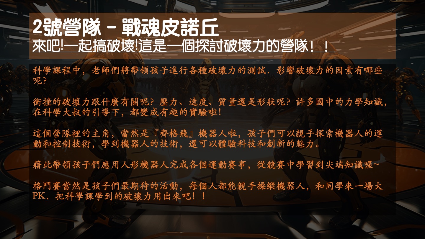 二號營隊:戰魂皮諾丘(人形格鬥機器人)