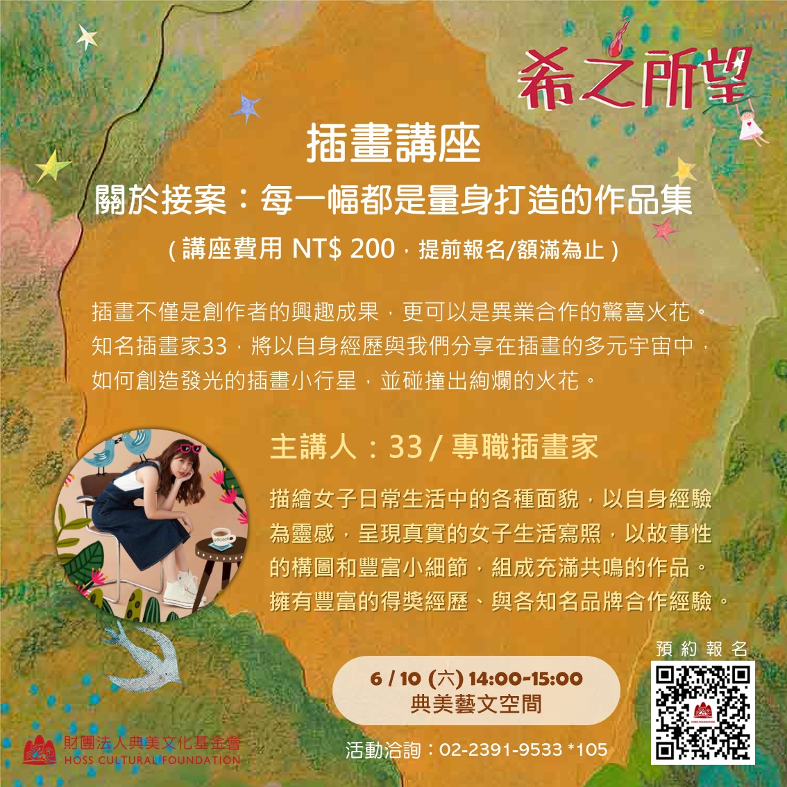 2️⃣ 6/10(六)14:00-15:00插畫講座 (講座費用NT$200)
