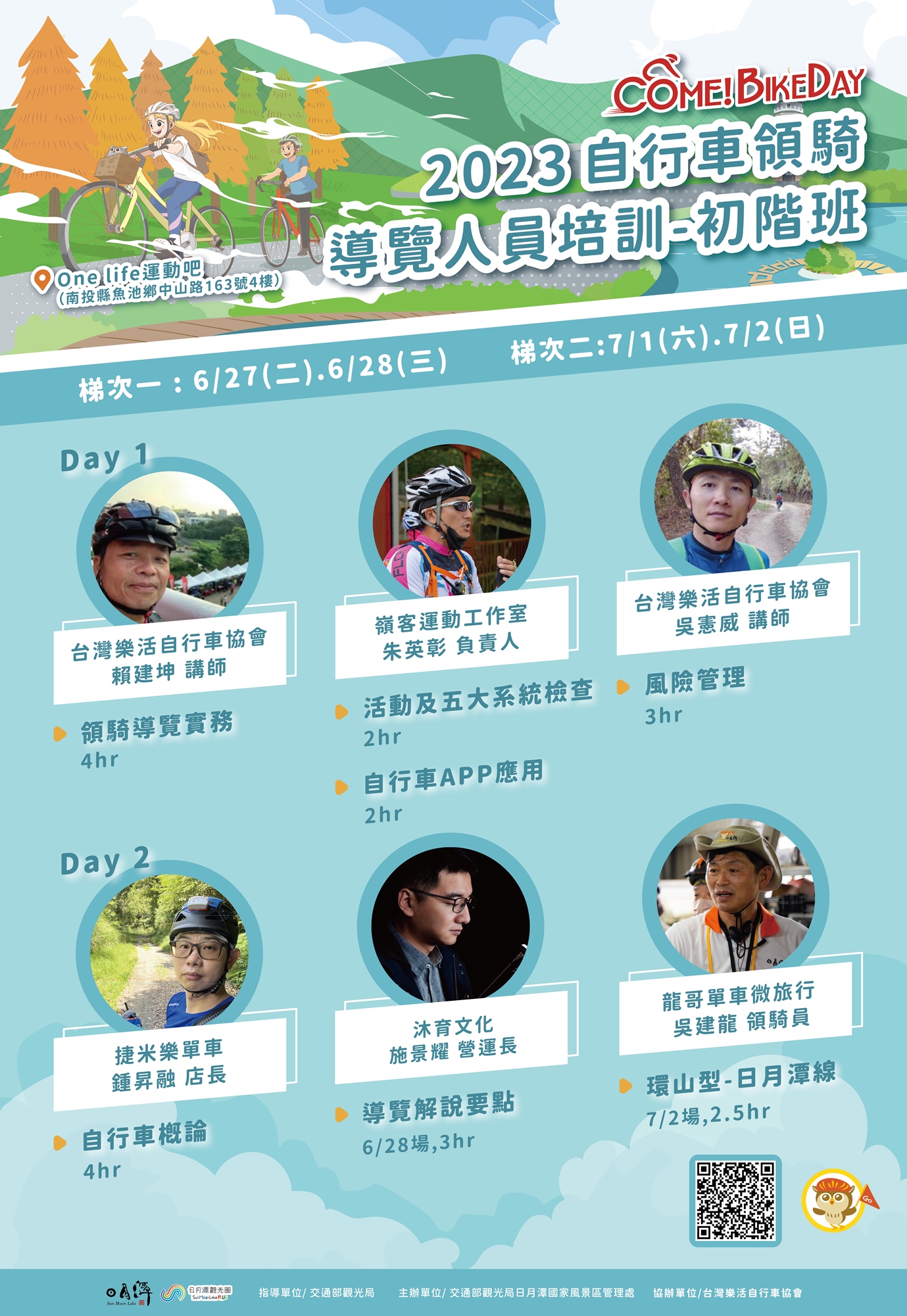 1300-1530 | 梯次一 日月潭路線 日月潭 領騎員 | 2.5hr | 梯次二 (分組路線交換) 1.日月潭路線 2.龍哥單車微旅行 | 日月潭 領騎員 | |