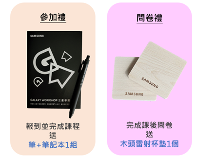 ⓺活動現場有可能拍照記錄,並於Galaxy Workshop網站、三星智慧館Facebook或Line官方帳號供學員瀏覽,並視需要作推廣宣傳使用,敬請知悉。