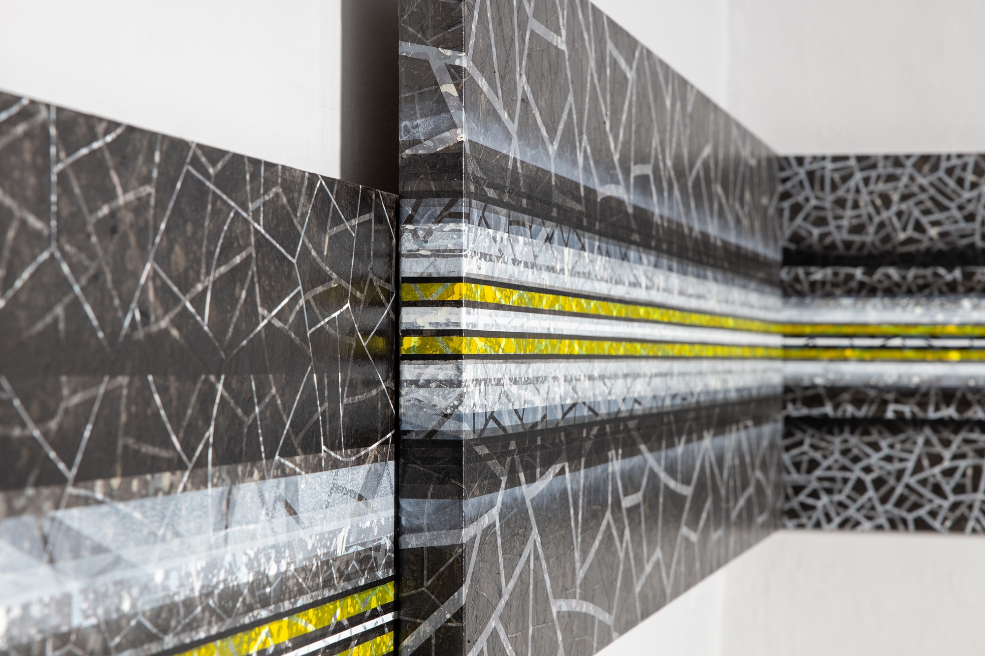 呂迦諾是不折不扣的臺生,但他是一位基督徒,長年研究西方抽象繪畫脈絡。本次展出宏大的壓克力「組合繪畫」《又三又一》,創作於個人生命史中面臨重大變故的高度精神性時刻,具有一種西方人文主義中強調的「悲愴性」(la pathétique),並成功的以抽象的方式表現出來。
