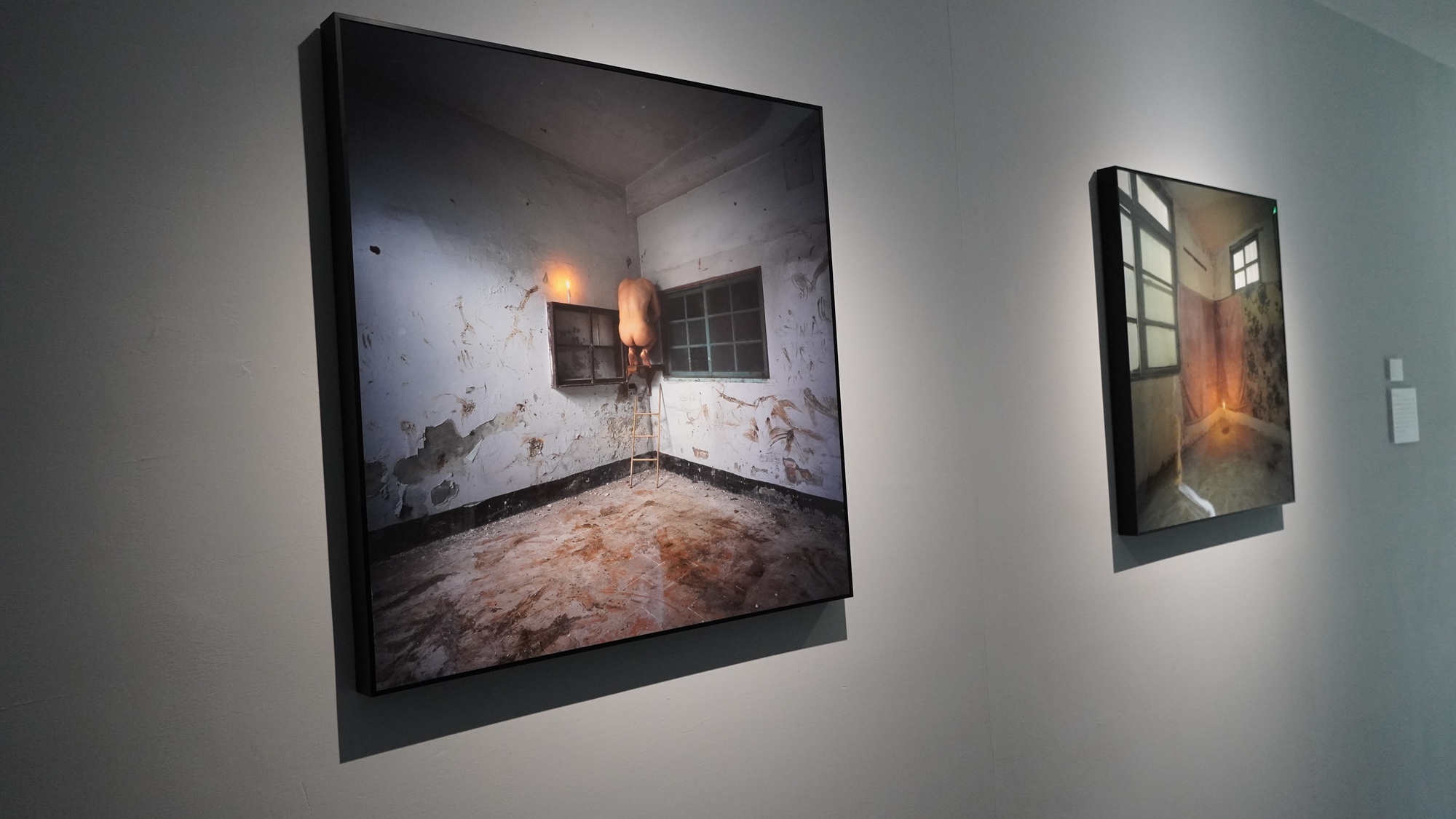 旅居義大利多年的中國藝術家王家男,於2018年負笈臺灣,成為台藝大博士生。他的攝影作品基調放在城市記憶、懷舊、崇高美等「廢墟」的傳統議題上,所不同的是作品中明顯的近乎突兀的藝術家身體。王家男以坦露的身體作為探勘場所物理性的活工具,回應了廢棄空屋的荒涼雜蕪、破敗陰暗、悶熱潮濕、庭院薰風、劃傷皮膚的植物與叮咬人的昆蟲。場所的物理性透過身體感官進入精神性,觸發他以光潔的裸體儀式性地將生命循環帶入,從而誕生了《彌留之地》系列作品。在人去樓空的榮民舊居中,與記憶的幽靈坦誠相見,或在身體隱沒後留下「蠟燭」的餘溫,都在在建立了某一種François Jullien所謂的「對立-相聯關係」(rapports d’opposition-corrélation)。