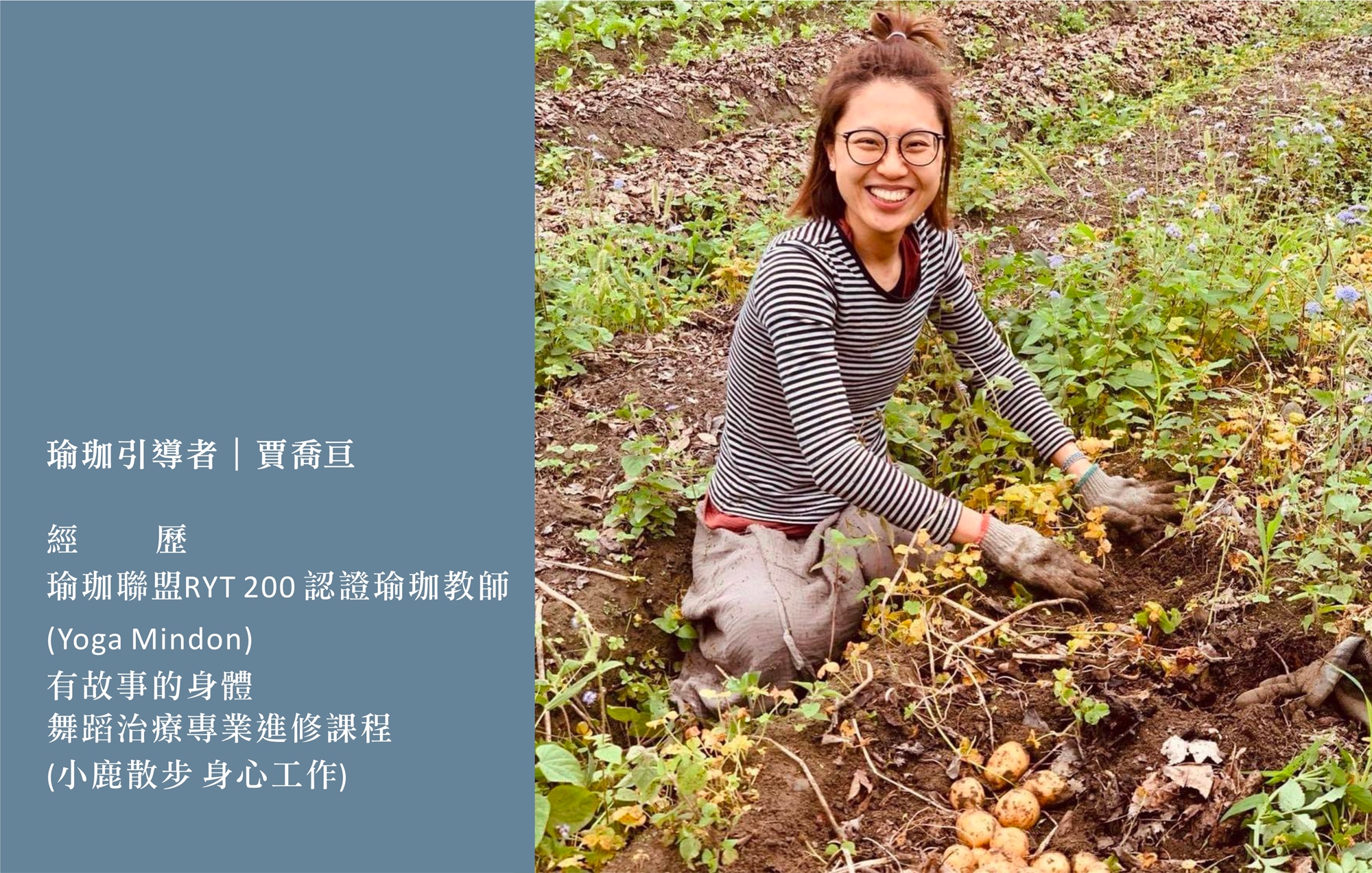 【瑜珈引導者:賈喬亘】幾年前面對即將要步入30歲的自己,對工作、生活和人生感到迷惘。當時在諮商心理師的鼓勵下,開啟了瑜珈練習之路。在瑜珈墊上,不僅有身體動作的訓練,更多的是探索內心、聆聽身體需求的練習。過程中無不有感動、焦慮、恐懼甚至頓悟的時刻。我也慢慢地在日常生活中實踐關照身體和情緒的練習,讓迷茫不安的日子漸漸安穩下來。最終,我想把這個美好的經驗分享給更多人。