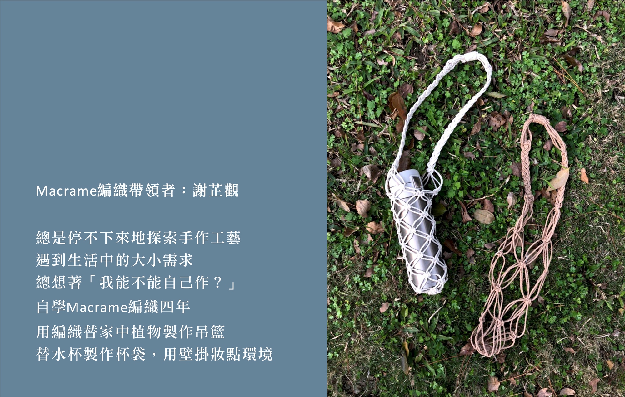 下午場|14:00-17:00|Macrame杯袋編織(攜帶要編織的水瓶或保溫瓶)