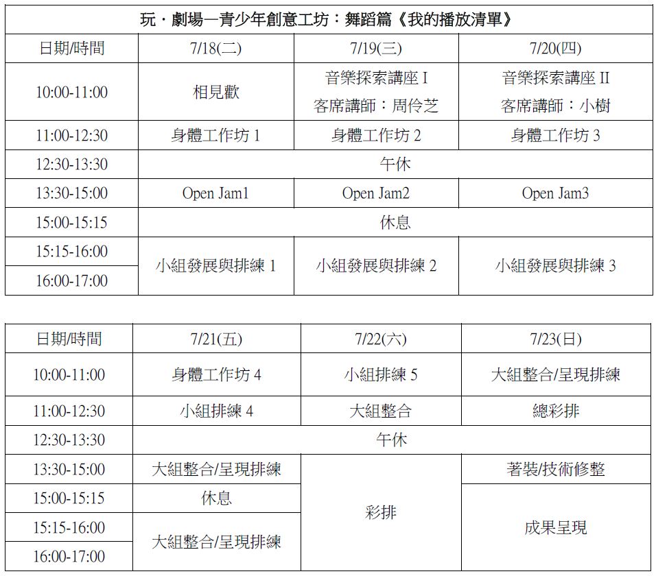 - 本工作坊共6天含1場成果呈現,恕不單堂分售;如需請假請提前告知,不另退費。