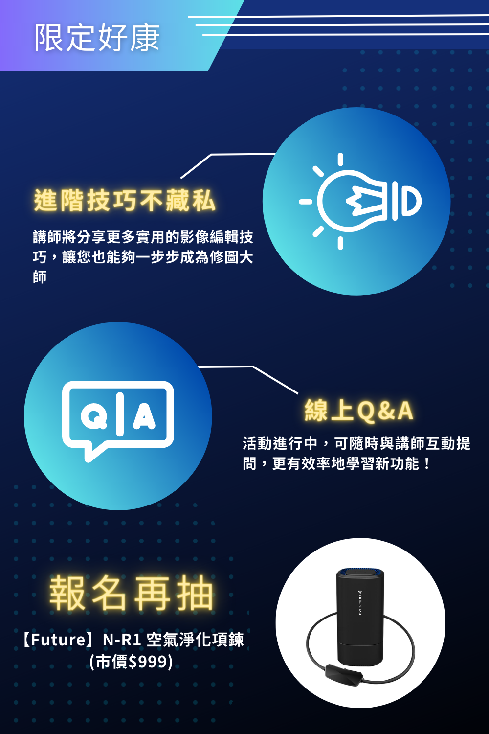活動中會介紹相片大師更多實用的影像編輯技巧,帶著您進一步了解「圖層編輯應用」等功能,圖層疊加、文字及圖形編輯,如果你也想在IG,FB上做出令人印象深刻的照片,或是有需要幫商品做修圖,這堂課教你的技巧,一定不能錯過 !! 在業界打滾超過10年的行銷導師,讓你在兩小時內受益多多 !!