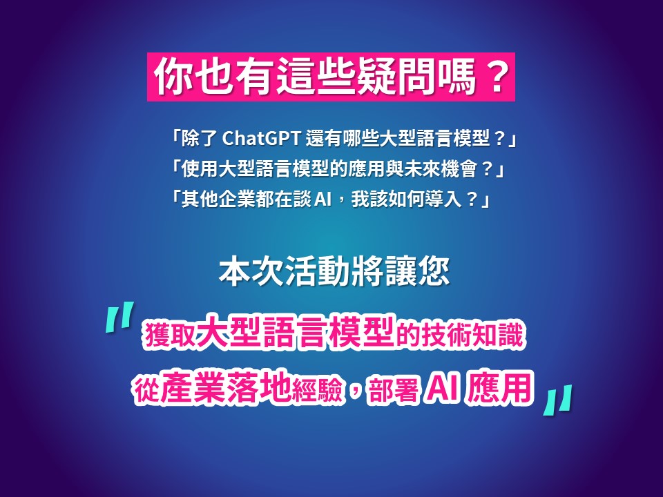 ▎講題二、企業級大型語言模型訓練優化與導入方案