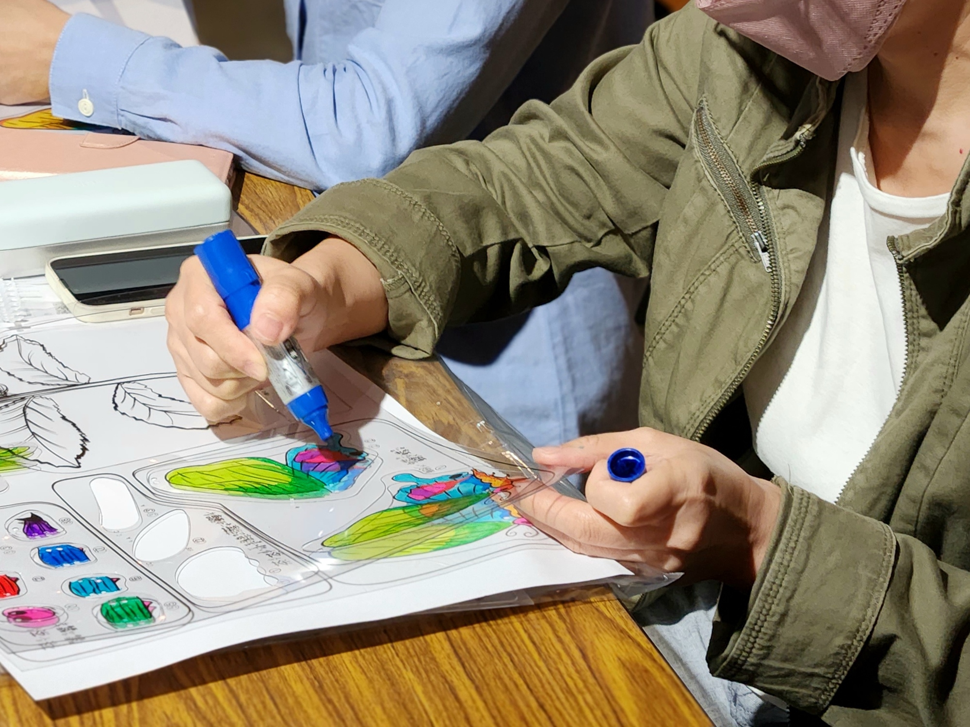 劇團備油性麥克筆,小朋友彩繪創作並剪裁戲偶與組裝(家長可陪同協助)