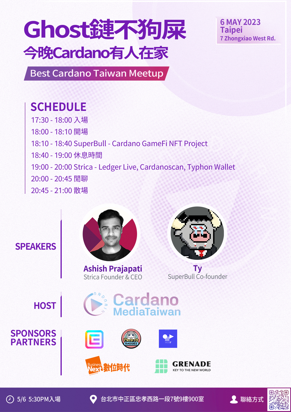 隨著 2023 年 5 月的到來,我們將舉辦今年第三次線下聚會《Ghost 鏈不狗屎,今晚 Cardano 有人在家》。如果您在台灣,歡迎加入我們!