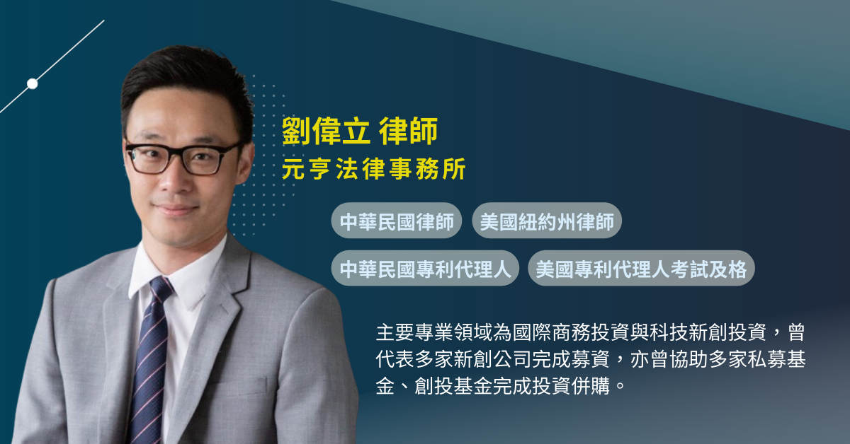 劉律師具台灣與美國紐約州律師資格,主要專業領域為國際商務投資與科技新創投資,曾代表多家新創公司完成募資,亦曾協助多家私募基金、創投基金完成投資併購。