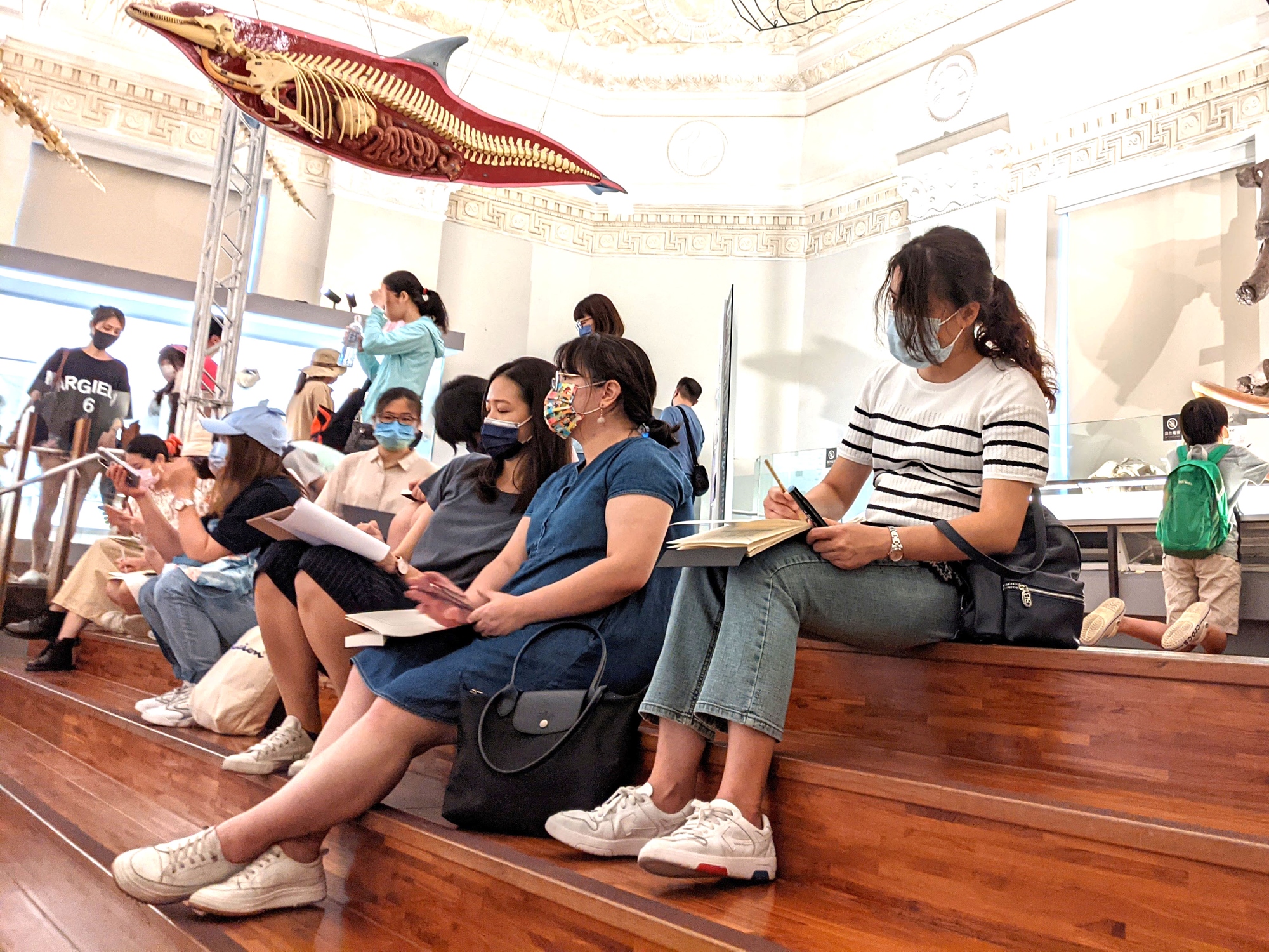 這次課程分成室內與室外課,共2堂課。從媒材基礎開始介紹,預習化石、空間、人物畫法;最後實地走入博物館,練習速寫技巧。透過由淺入深的插畫練習、觀察力訓練,搭配講師一對一指導,就算是沒有繪畫基礎的人,也可以畫下屬於自己的博物館印象噢!