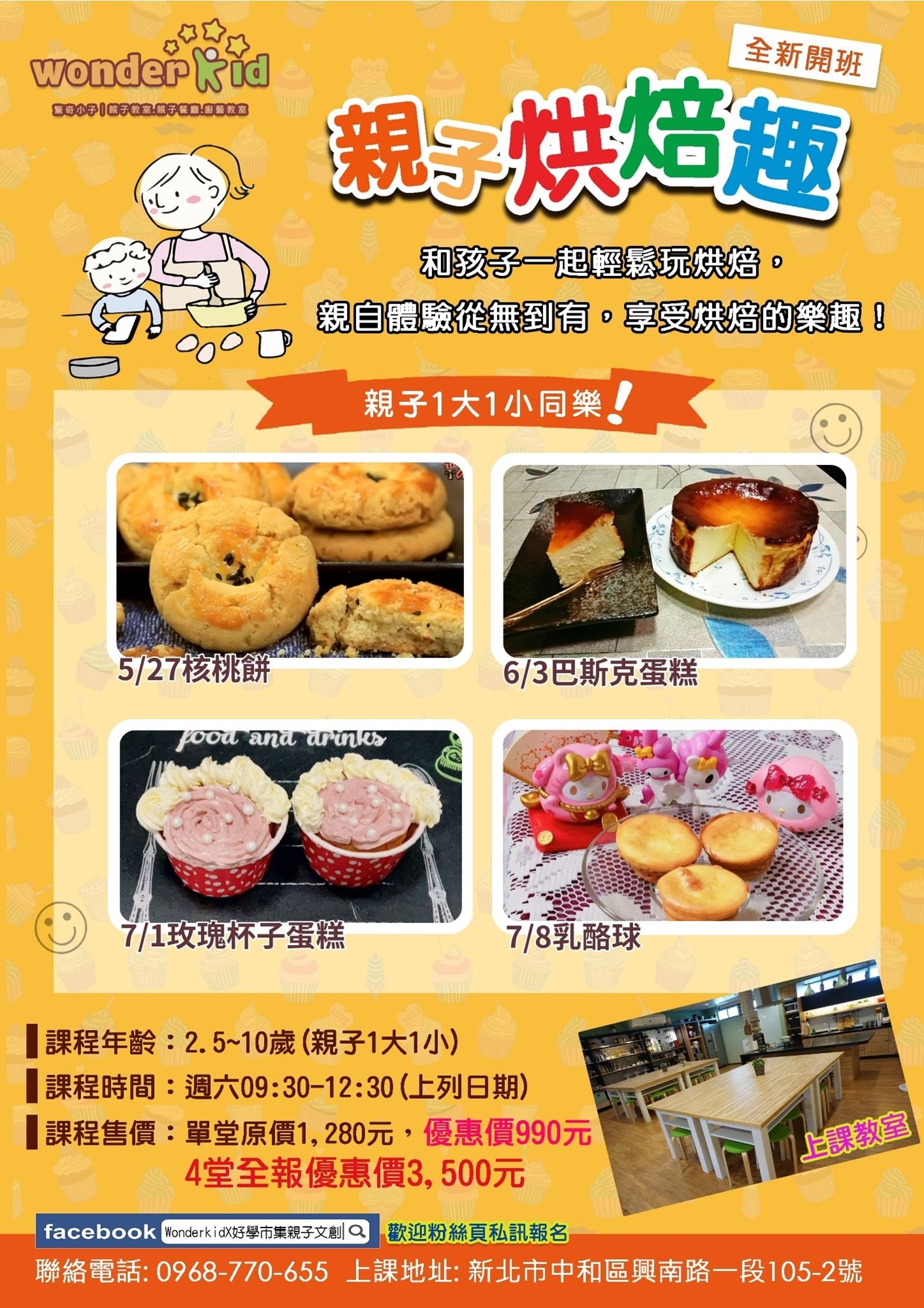 這次將由宋老師帶領大小朋友們一起體驗烘焙的樂趣和滿滿的成就感喔!