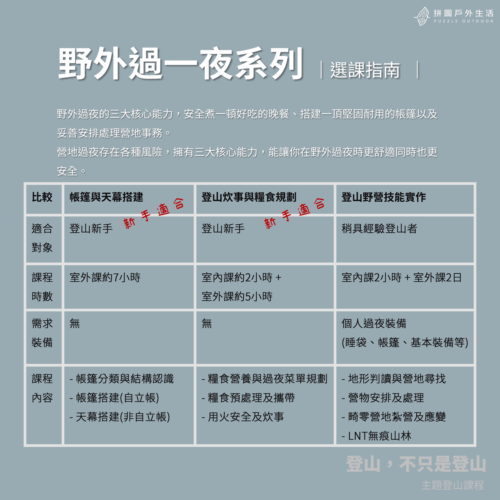 ▍野外過一夜課程比較