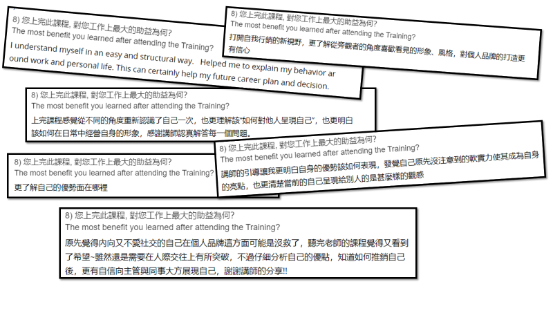 - 優勢分析:分析個人優勢、劣勢,協助了解自己的個人特質與潛力