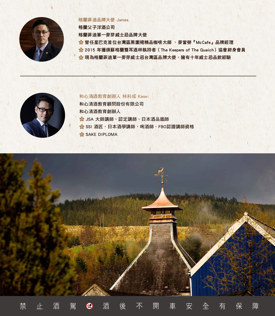 格蘭菲迪品牌大使James與和心清酒教育創辦人林科成,親炙明治維新後的欣欣向榮,
