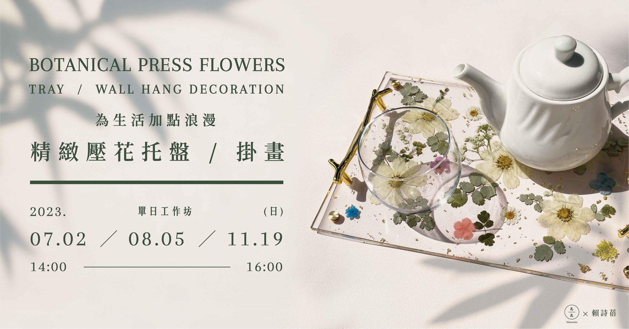 沒問題!讓老師來幫你實現,用樹脂把花兒的奼紫嫣紅封存,在家隨時感受春天氣息。無論是放置物品的收納盤,還是妝點空間的掛畫,一堂課滿足你的願望,讓我們一同徜徉花海享受下午茶,或是讓生活每處角落皆是一幅畫。
