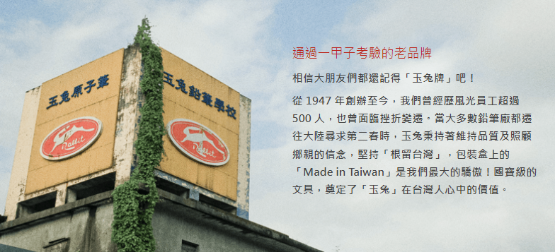 玉兔牌(玉兔文具工廠)其實一開始做的是五金製造與油墨印刷為主,後來才做筆類與文具周邊。為了擴大玉兔的版圖,玉兔選擇從台北景美搬到了羅東,欲透過羅東林業與蘇澳港降低物料生產與運送成本,沒想到後來大環境變化,造成文具製造變為傳統產業。臺灣錢淹腳目的年代,玉兔一直以代工美日知名品牌文具為榮,後來在大陸崛起變為世界工廠,而電腦的發達改變了大家書寫的習慣,80年代的玉兔經營得更加辛苦。