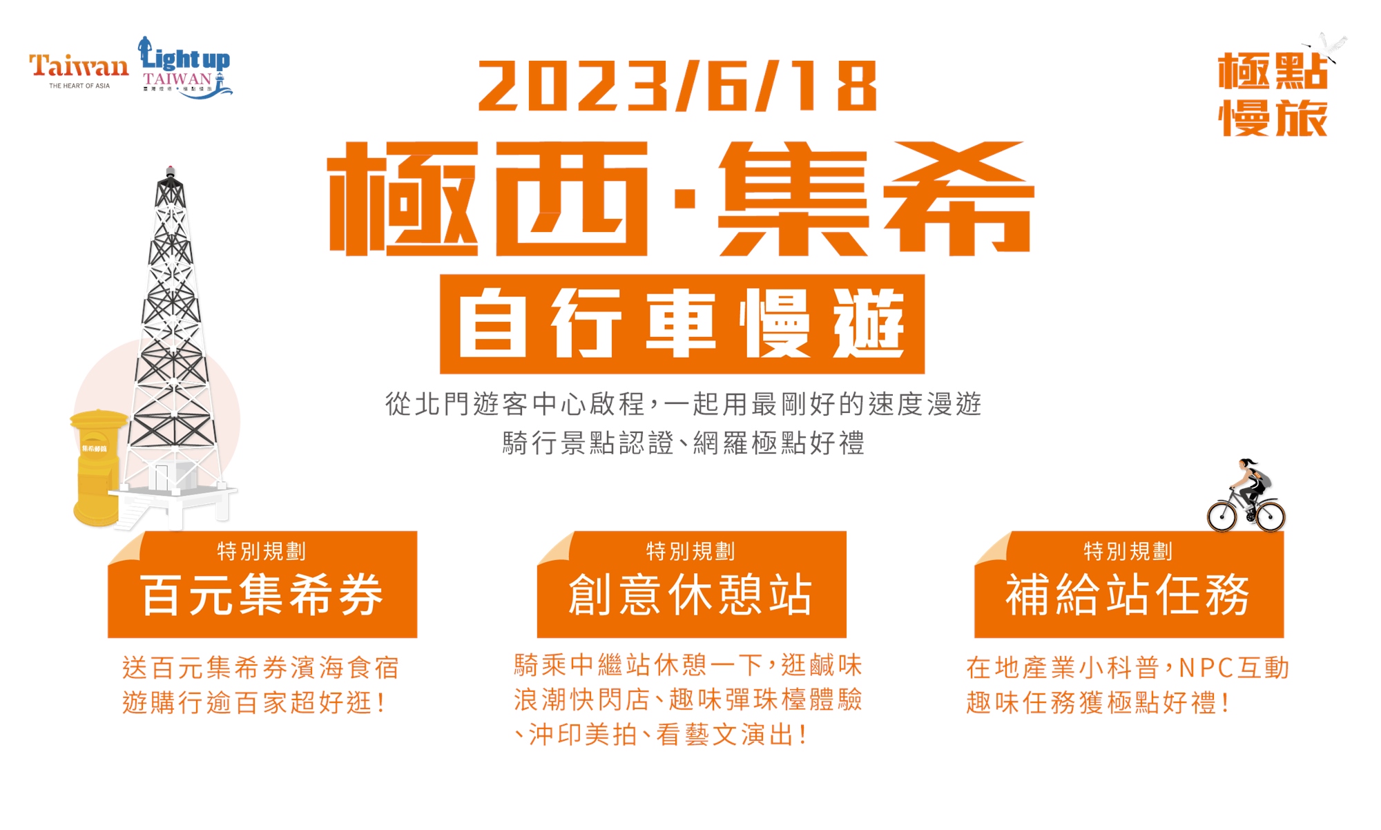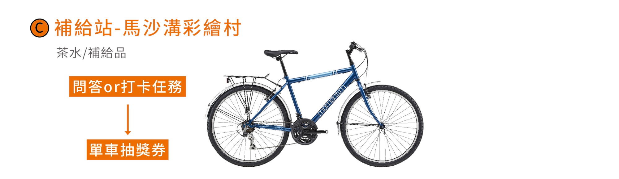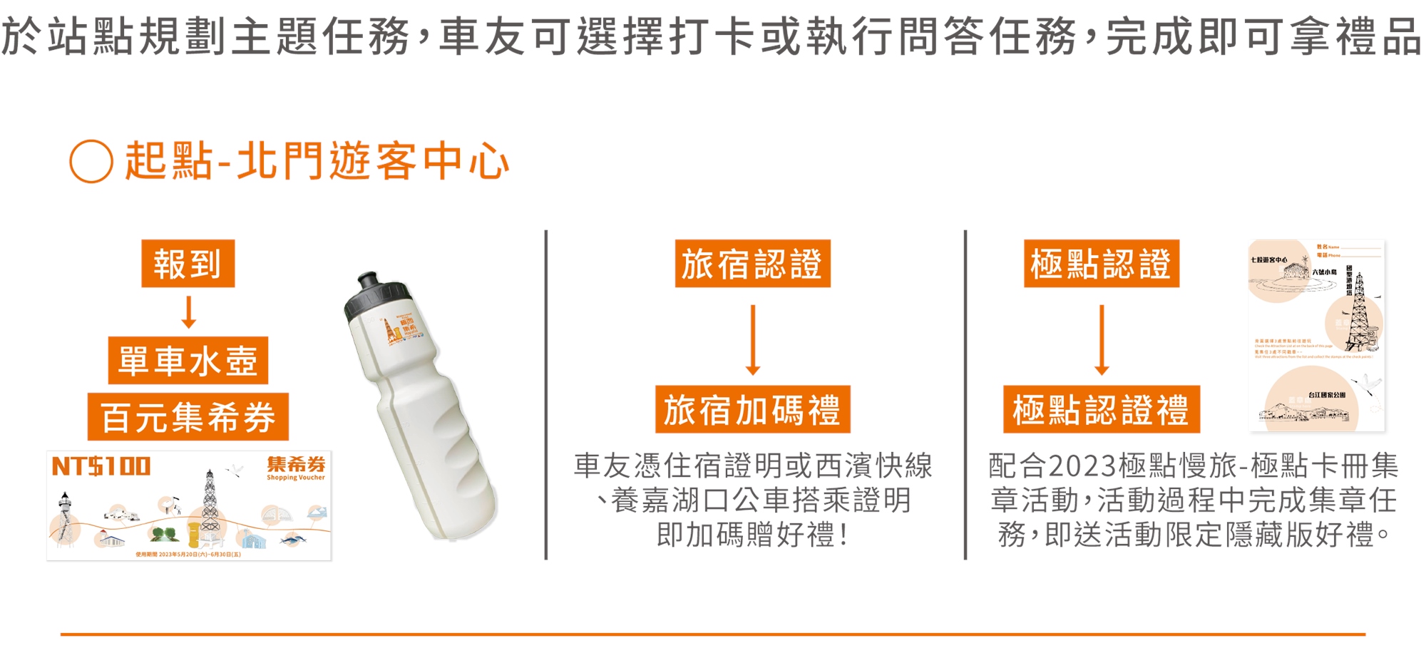 | 報名即享 | 100元集希券(可於指定店家折抵消費)、補給品、 單車水壺、尋寶地圖。