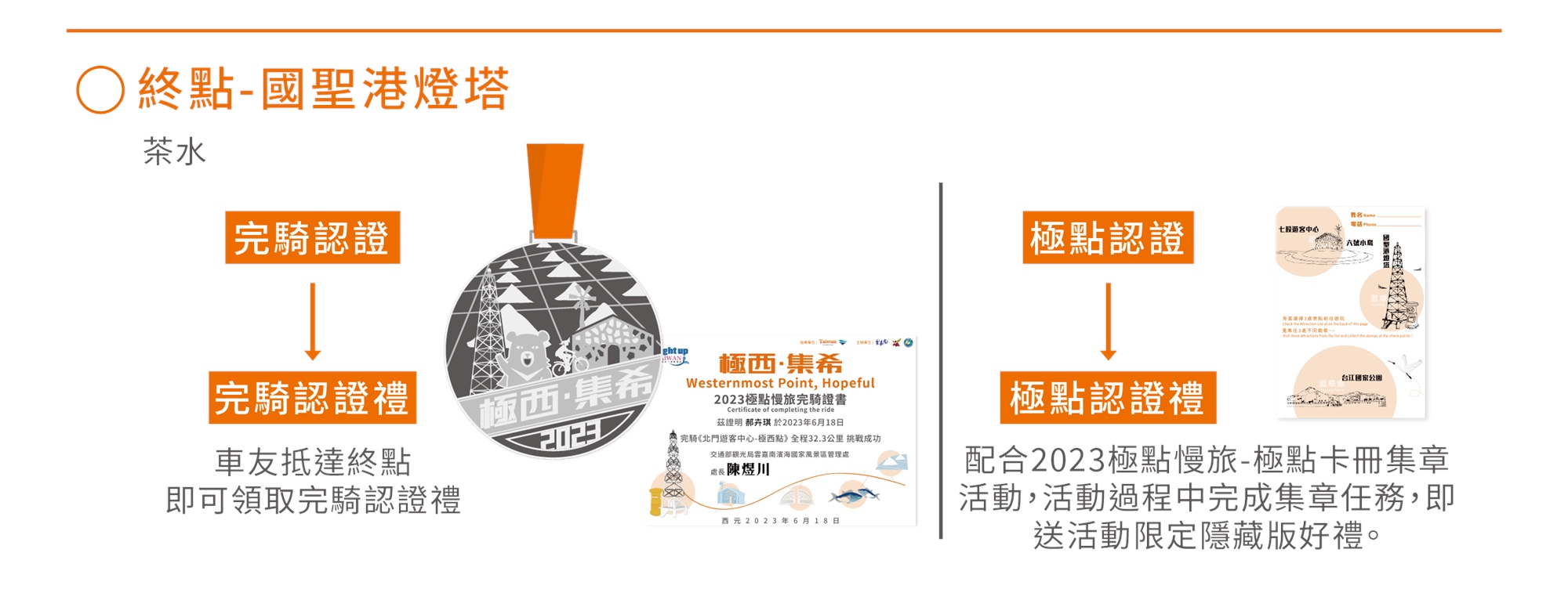 | 完騎禮 | 完成各站點到訪認證,即可領取完騎認證書、完騎獎牌。