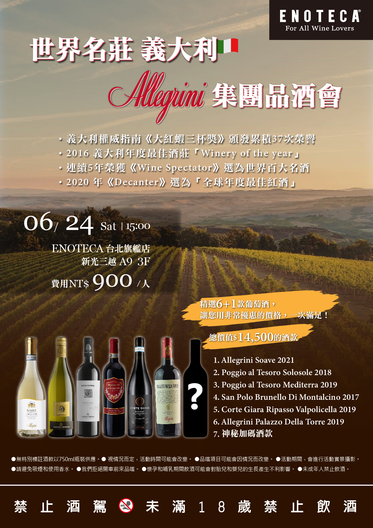 .活動若因疫情延期或取消,相關訊息將於ENOTECA臉書粉絲頁公告。
