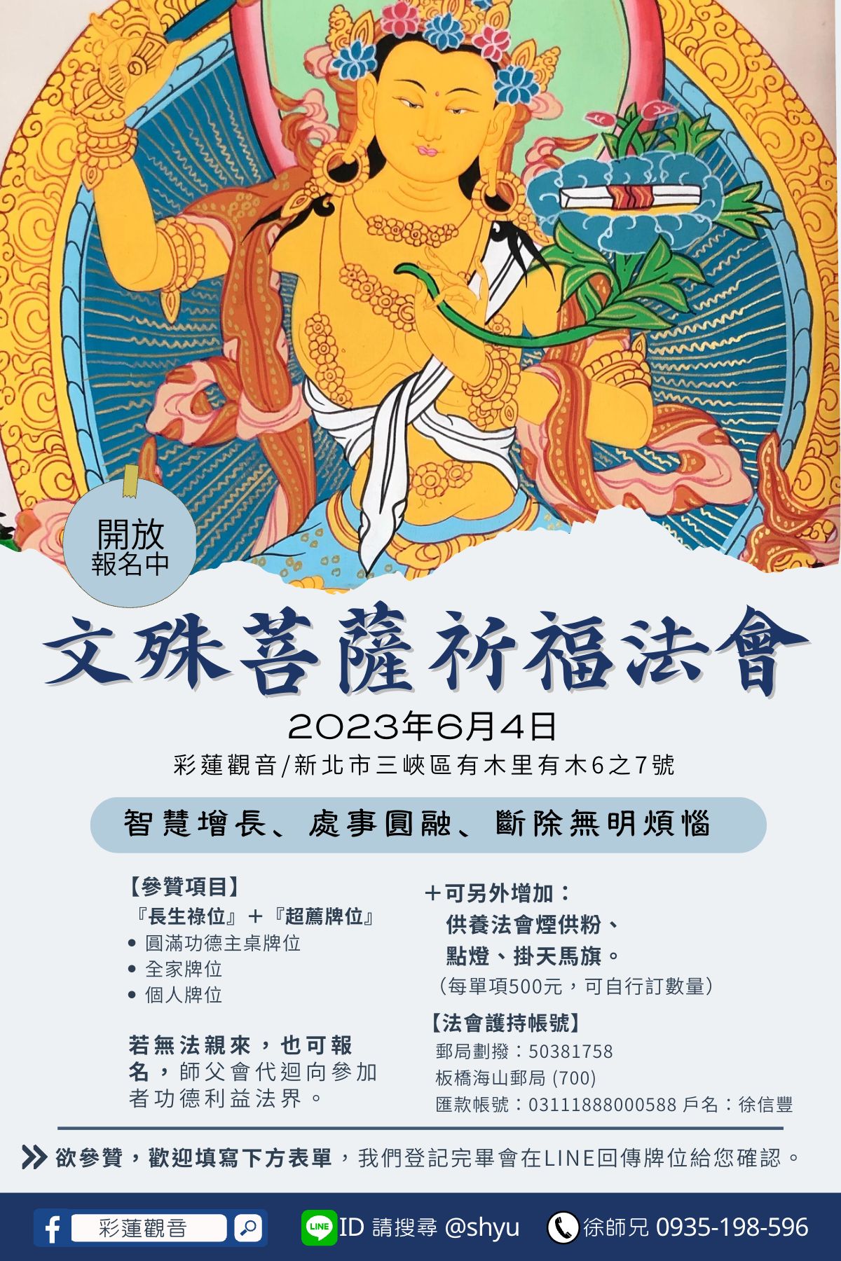 ✅ 文殊菩薩 (智慧) 法會參贊表單:https://www.shyu323.com/manjushri