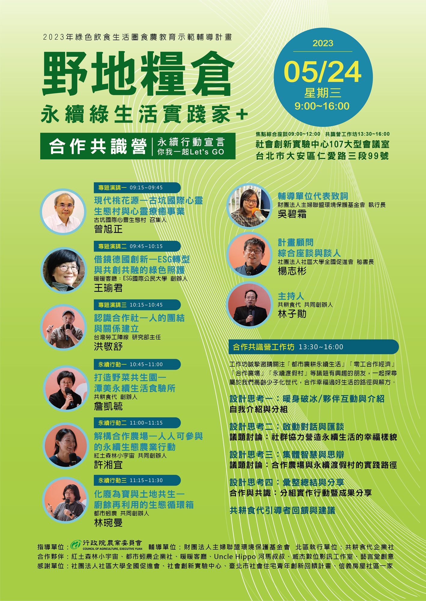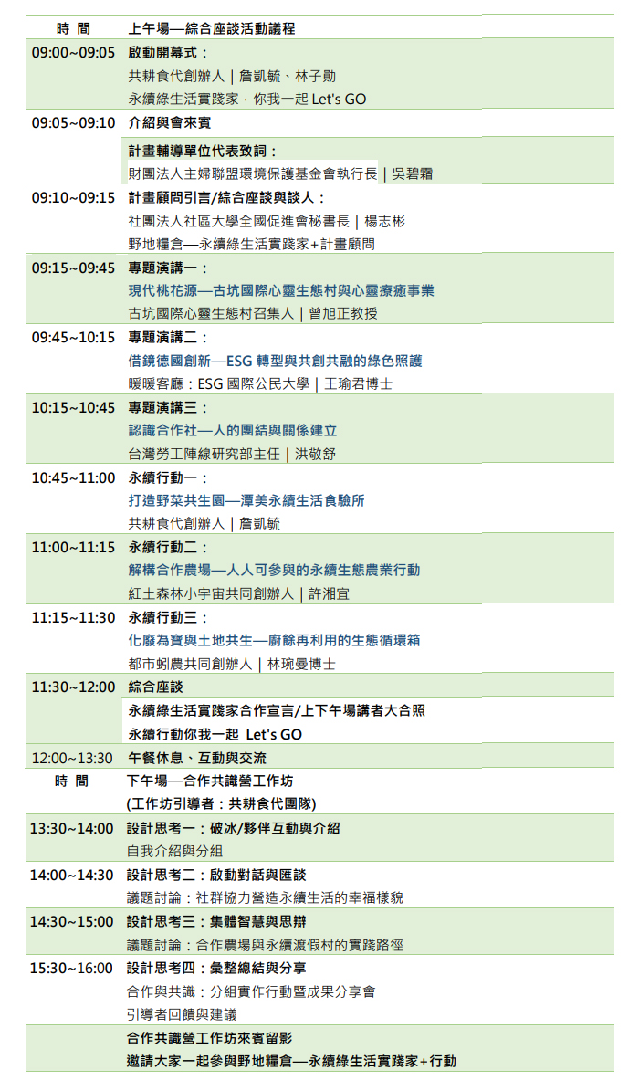 對『都市農耕永續生活』『零工合作經濟』『合作農場』『永續渡假村』議題有興趣者及一般民眾皆可免費報名。