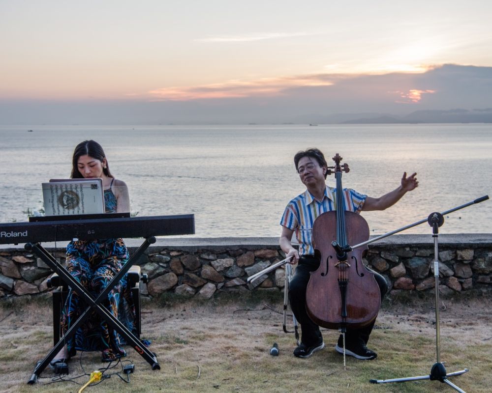 (2022年大坵暗空之夜・夕陽張正傑大提琴迎賓・來源:主辦單位提供)
