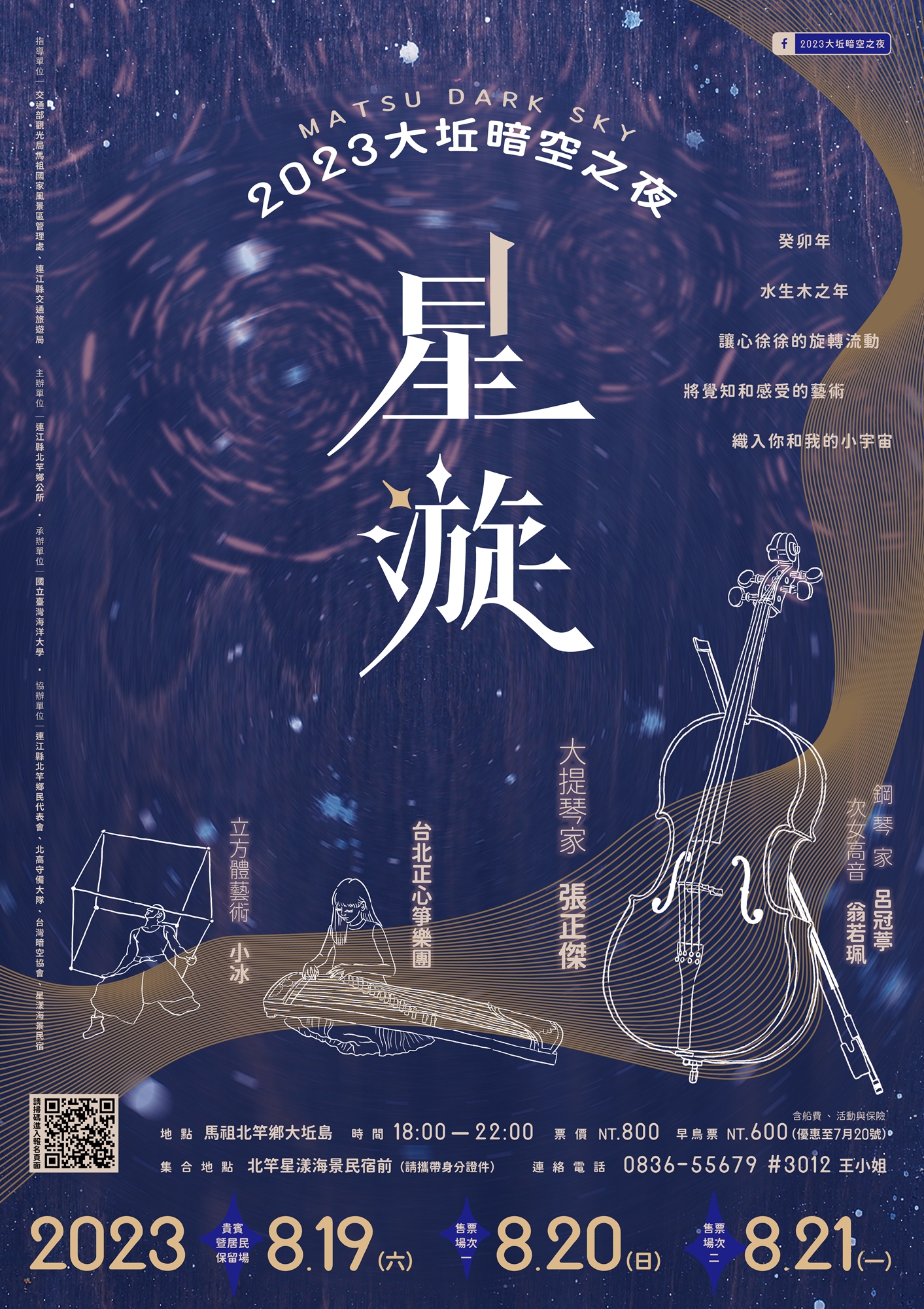 🎶🎼一弦定音:邀請台北正心箏樂團在繁星熠熠的大坵島上演出,以傳統國樂創新演繹,並搭配福州歌謠唱頌,帶領旅者走入閩東文化的世界裡。
