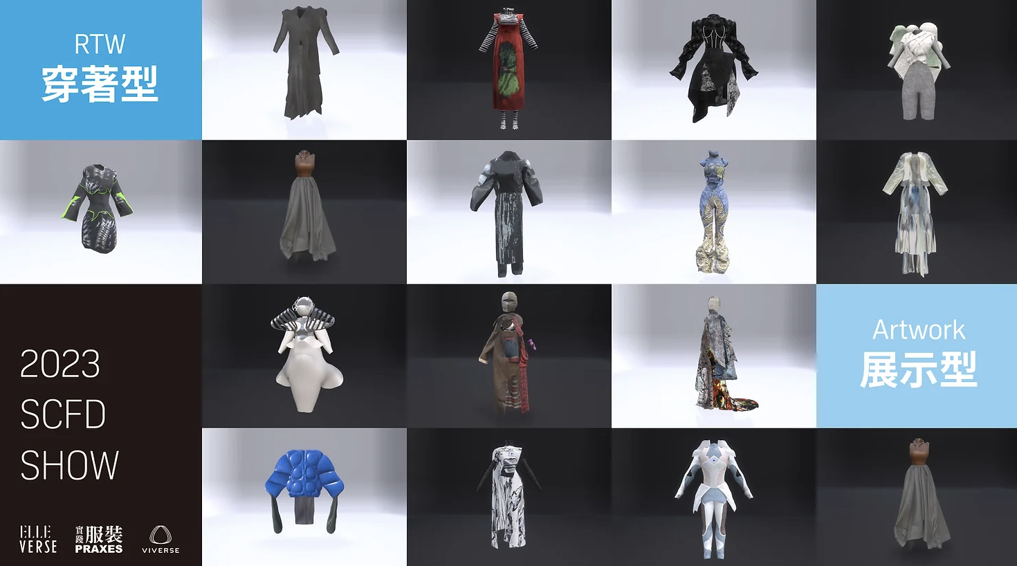 VIVERSE 旗下 NFT 商城 VIVERSE Market 結合 VIVERSE Avatar 虛擬化身換裝功能,首波獨家藏品即為由實踐大學服裝設計學系畢業生以 3D 技術創作的《2023 SCFD SHOW》系列 16 套時裝賦能 NFT,在元宇宙環境中呈現大膽創意、栩栩如生的服裝細節,從設計製作、展演模式到發行都實現永續時尚。《2023 SCFD SHOW》系列在 Polygon 區塊鏈上發行,分為展示型及穿著型。民眾自購入「與角色化身相容」的穿著型賦能 NFT 後,即可於 Avatar Creator 為自己在元宇宙的虛擬化身換上新裝,實際支持新銳設計師。