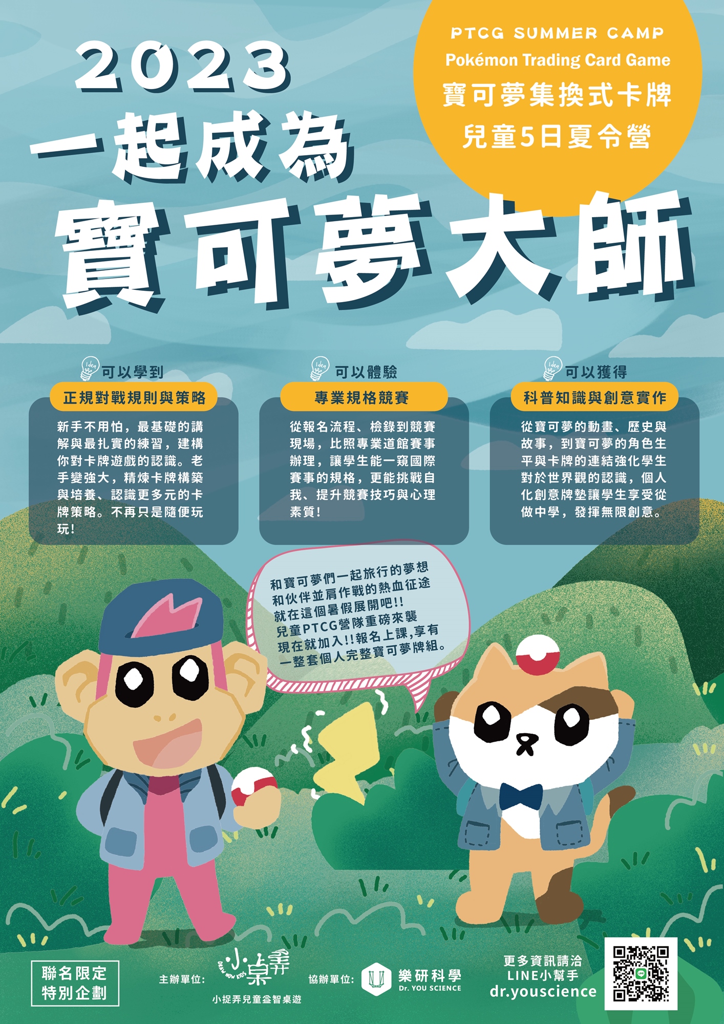超人氣寶可夢卡牌營隊來拉!!這個暑假給你無限想像,由樂研科學和小桌弄兒童益智桌遊聯名帶來的『寶可夢大師』暑期營隊,由寶可夢官方認證裁判,訓練孩子的邏輯組合與思維技巧,進行專業卡牌對戰教學!在組合卡牌對戰過程中,不斷訓練孩子思考!!不單單只是數字的加減,如何使用排列組合、能量、技能加乘,一步步思辨策畫謀略,用技巧戰勝對手!藉此讓孩子激發腦部潛能!