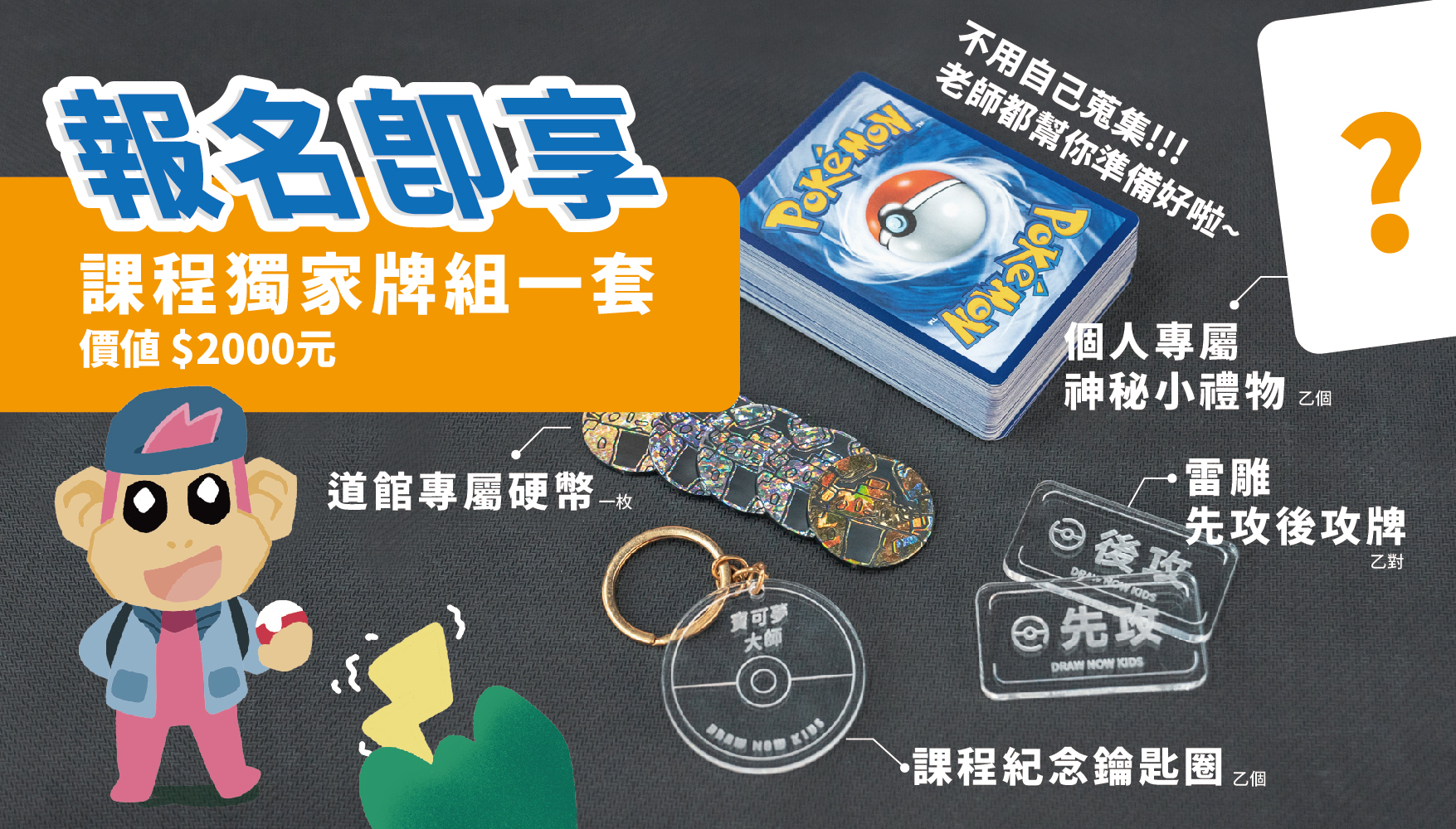 寶可夢營隊,讓你來練功!!一起成為寶可夢訓練大師!不再只是一堆卡牌亂亂玩從基礎到進階,針對寶可夢的各種屬性、角色靈活運用!帶領大家踏上尋寶旅途征服不同的寶可夢,更加充實自己的實力和牌組